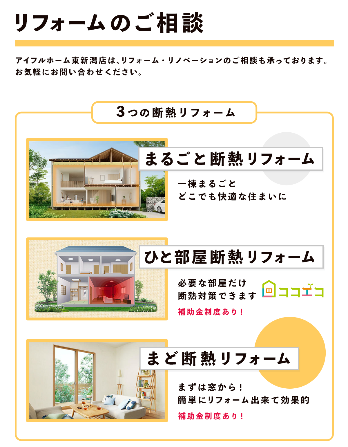 アイフルホーム東新潟店では「断熱リフォーム」の相談会を2026年3月31日まで開催しております。